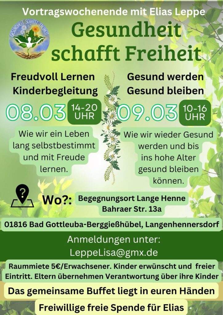 Liebe interessierte Menschen, wir sind voller Vorfreude euch ein wunderbares Vortragswochenende am 08. + 09. März bieten zu können! Der Bruder von Ricardo Leppe, Elias, wird mit seinen Gästen in […]