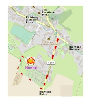 Anfahrt Begegnungsort Lange HenneBahraer Str. 13a01816 Bad Gottleuba-Berggießhübel, LangenhennersdorfBitte beachten Sie die Hinweisschilder zur Anfahrt zum Parkplatz.