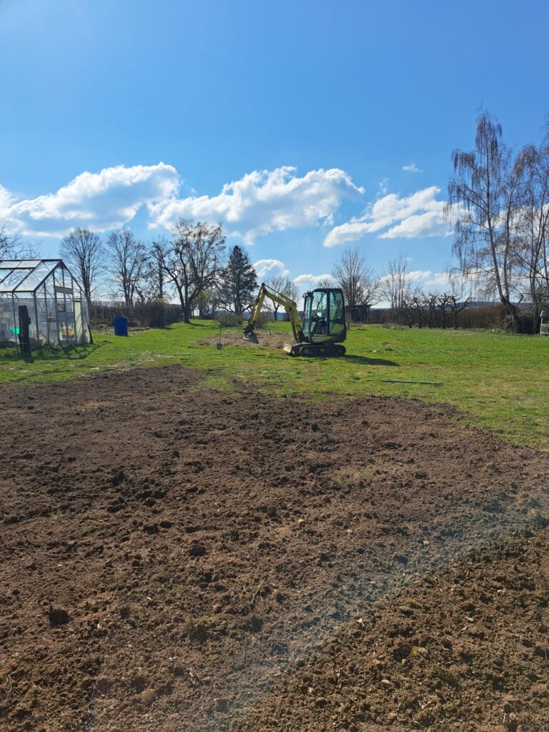 Der Frühling lädt zum Aktionismus ein! Von sehr engagierten Mitgliedern unseres Vereins wurde in den letzten Tagen viel Erde bewegt, um das Projekt Unterstand voran zu bringen. Sogar einen Bagger konnten wir durch Unterstützung für diese Arbeit nutzen. Überschüssige Erde wurde zum Begradigen des Geländes genutzt und sobald wieder Zeit und Sonne ist, geht es weiter. Wir freuen uns über diese sichtlichen Veränderungen auf dem Gelände und hoffen dann bald Fahrgeräte von den Kindern u.ä. dort unterstellen zu können, um die Dinge vor Witterung zu schützen. Damit nicht nur eine Generation Freude hat.