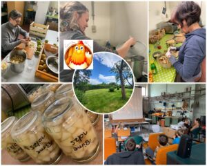 Auch in den Ferien treffen sich die Familien die da sind, um gemeinsam Zeit in der Henne zu verbringen. Jeden Samstag wird das erledigt, was ansteht. Dieses Mal sind wir noch kräftig dabei die von der Natur gegebenen Früchte zu lesen, zu ernten und schließlich zu verarbeiten. Nach den vielen Beeren, Tomaten, Kräutern sind nun die Birnen und Äpfel dran. Alles findet vor Ort in der Henne statt, sodass auch die Kinder die Prozesse mit erleben und helfen können. Denn das ist uns wichtig und das Kernthema der Henne: gemeinsam, als Gemeinschaft, das heißt auch insbesondere mit (unseren) Kindern und allen Menschen die Teil der Gemeinschaft sein möchten, solche essentiellen Dinge des Lebens (wieder) erlebbar zu machen. Einige von uns haben zu Hause auch einen Garten, aber dort stehen sie oft alleine mit allem da und das ist die Magie der Henne: hier kommt man zusammen, lebt zusammen und genießt zusammen! Wir haben sogar als Herbstferien-Highlight noch eins drauf gelegt und Homekino mit dem fünften Teil von Ice Age zum Nachmittag angeboten. Mit einem knisternden Kamin im Hintergrund wurde im Anschluss zum Abschluss noch Kaffeegetrunken, aufgeräumt und vergnügt nach Hause gegangen! Diese Woche fangen wir mit dem Apfelsaftpressen an.