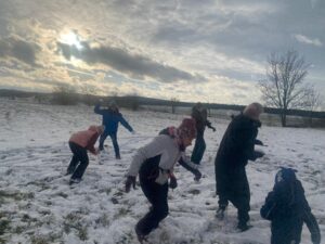 Vergangenen Samstag haben wir unser erstes Familien Vereinstreffen für das neue Jahr 2025 gehalten. Viele Mitglieder sind gekommen, um anstehende Dinge zu planen und gemeinsam Zeit zu verbringen. Letzteres stand eigentlich im Vordergrund und hat allen wieder sehr viel Glücksgefühle bereitet. Nachdem es huschelig warm gemacht wurde, fingen wir an gemeinsam zu kochen: „Kartoffelpuffer“ stand auf dem Plan. Mit selbst gemachtem Apfelmus und selber geernteten Kartoffeln aus der Region. Dazu Salat oder Quark. Einige Kinder haben in der Küche mit geholfen, der andere Teil hat sich schon einmal in der Turnhalle warm gemacht für das später angedachte Fußballspiel. Lecker war es! Und wie heißt es so schön „Nach dem Essen sollst du ruh´n oder…“ eine Schneeballschlacht tun :-). Einige von uns hat es also ins weiße Kühl hinaus gezogen, wo Kinder mit Eltern zusammen Schneefreuden erlebten. Danach schmeckt der Punsch oder Tee gleich viel besser und das gesunde Wangenrot stärkt das Immunsystem zusätzlich. Die Weiterplanung unseres Bauwagens stand als Gesprächsstoff im Vordergrund und nimmt sogar auf dem (virtuellen) Papier immer mehr Gestalt an. Wir sind uns mit den Kindern recht einig, wie wir Ideen umsetzen wollen. Zum Abschluss wurde dann das ersehnte Fußballspiel durchgeführt, was gleichzeitig symbolhaft für diesen Tag und den Auftakt unseres Hennenjahres stand. Es war herrlich und hat allen Anwesenden Lust auf mehr gemacht! Bis bald, eure Henne.